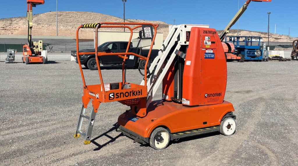 These vertical compact lifts raise a small platform straight up using a mast. They’re often electric and designed for indoor or tight-access work.